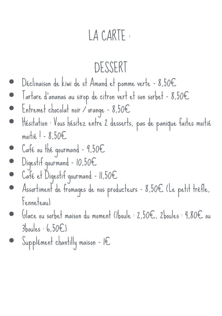 LES PHOTOS CI DESSOUS NE REFLÈTE PAS OBLIGATOIREMENT LA CARTE ACTUELLE
